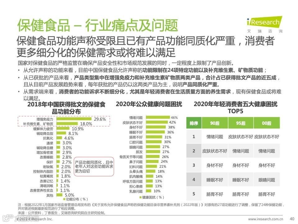 功能性食品和保健食品经常一同出现被讨论,但两者在我国面临不同的法律地位和行业监管,直接导致了两者在产品类型、营销宣传、销售渠道等产业端完全不同的发展路径,企业亦面临不同的行业准入门槛。本报告将对保健食品及功能性食品的发展现状、管理模式、产品类型、市场玩家、准入门槛、行业问题及应对策略进行全面分析,最后探讨成熟企业和初创公司进入保健食品和功能性食品行业的潜在市场进入方式及可行性。