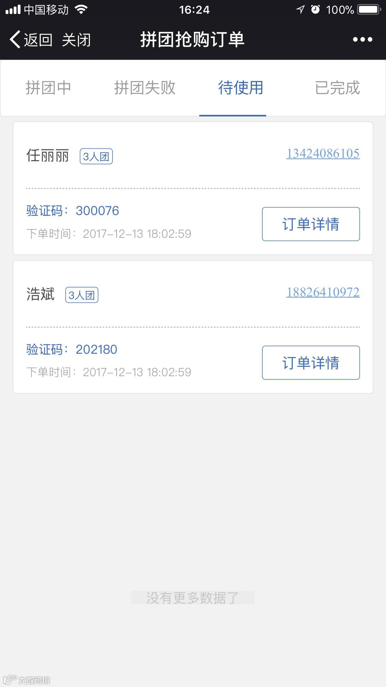 进入“待使用”订单,查看订单详情