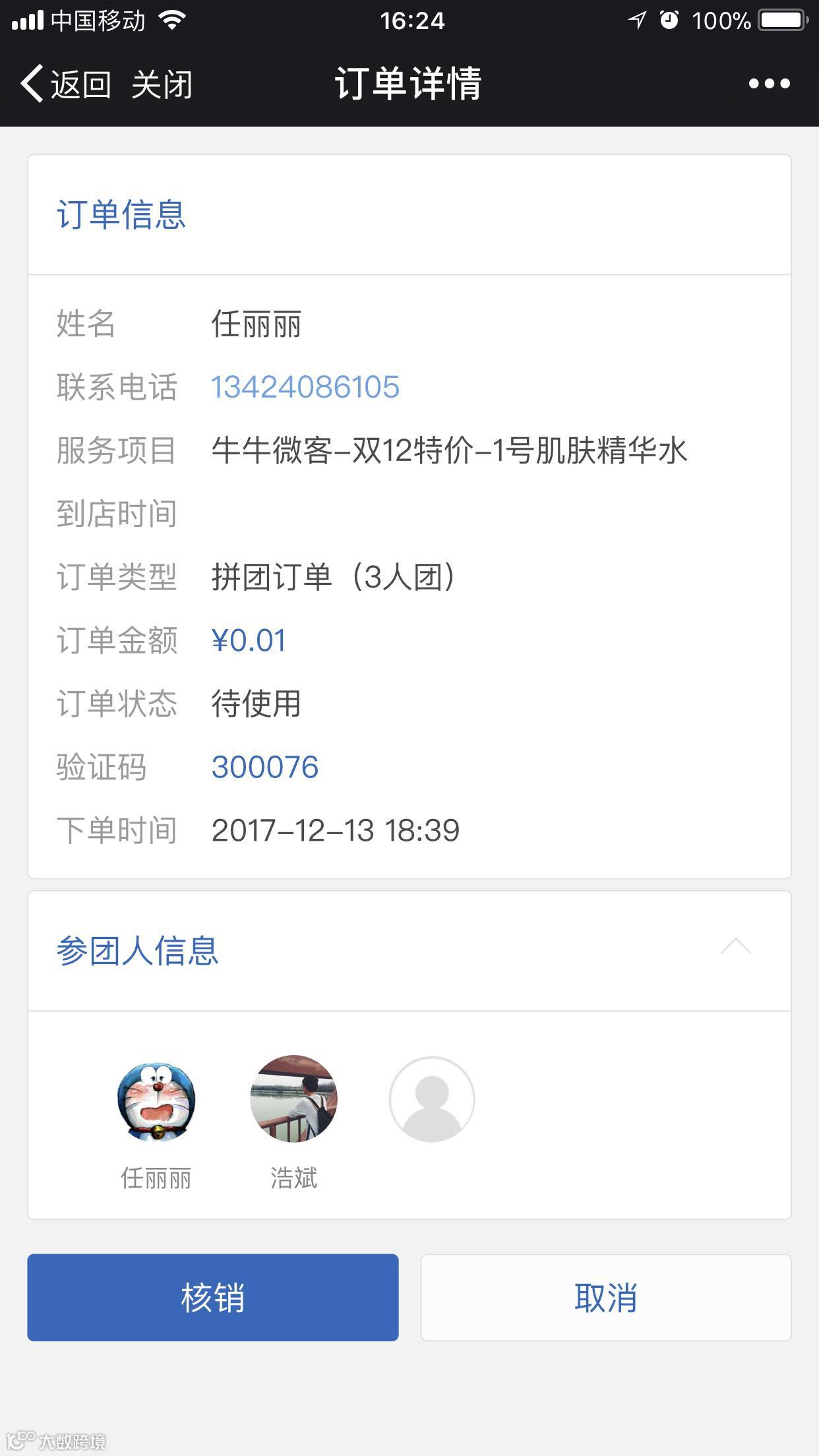 客户到店服务或收货后,可以对拼团订单进行核销,核销后,订单金额会进入您的财务中心,后续您能够进行提现。