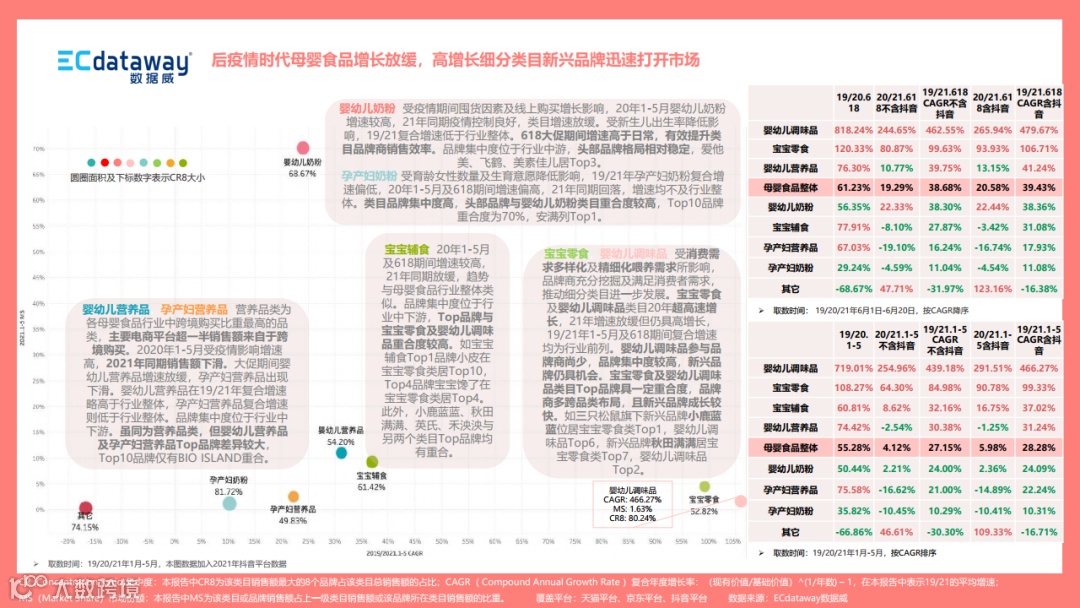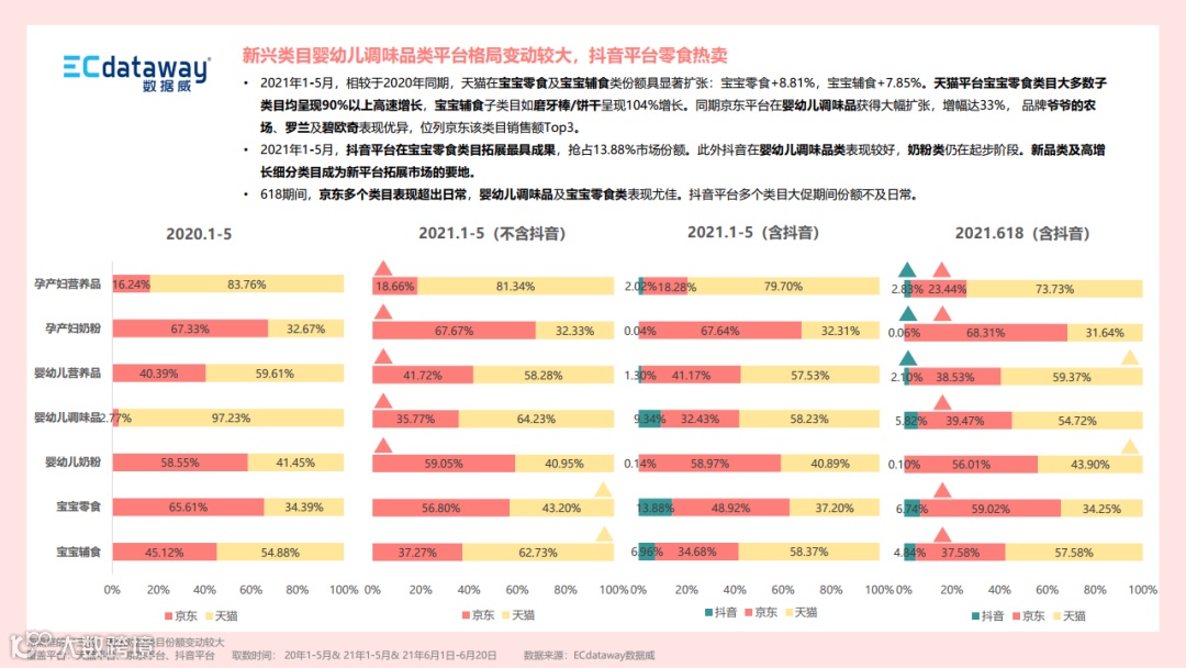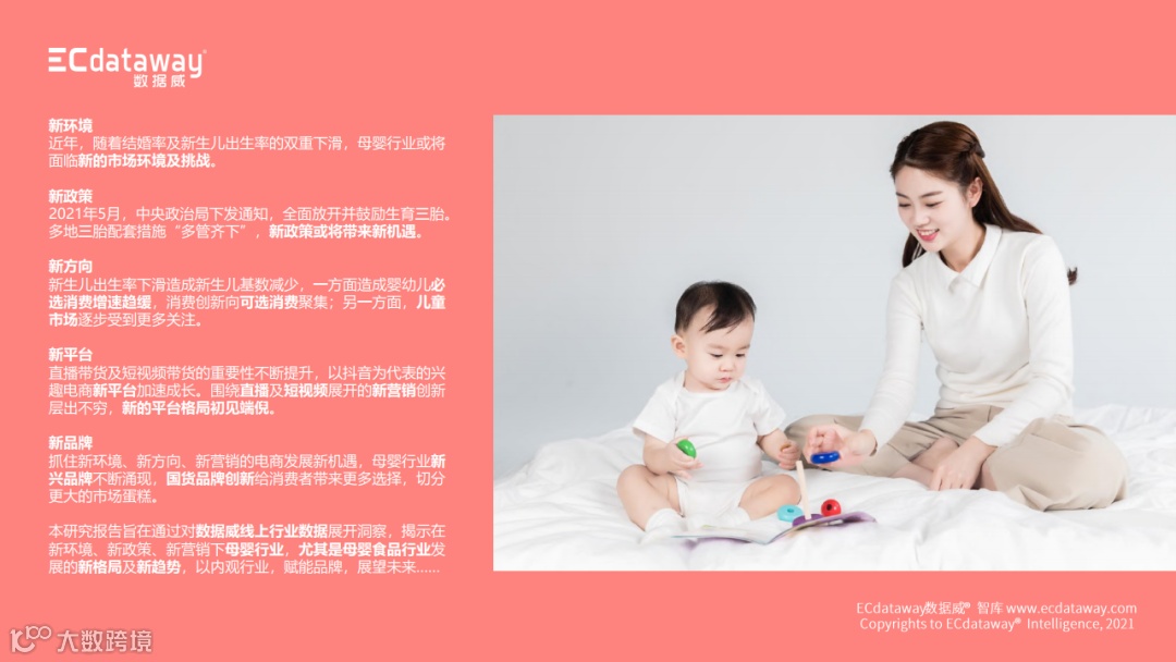 怀着深入探究行业、研究更优解决方案的初心,ECdataway数据威耗时三个月,完成了《2021上半年母婴食品行业“新观察”》研究报告,旨在通过对数据威线上行业数据展开洞察,揭示在新环境、新政策、新营销下母婴行业,尤其是母婴食品行业发展的新格局及新趋势,以内观行业,赋能品牌,展望未来……