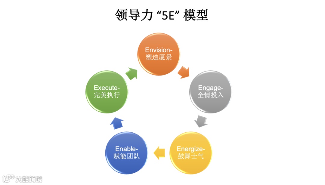 领导力5E模型包括五个关键要素:Envision(高瞻远瞩)、Engage(全情投入)、Energize(鼓舞士气)、Enable(授人以渔)、Execute(卓越执行)。