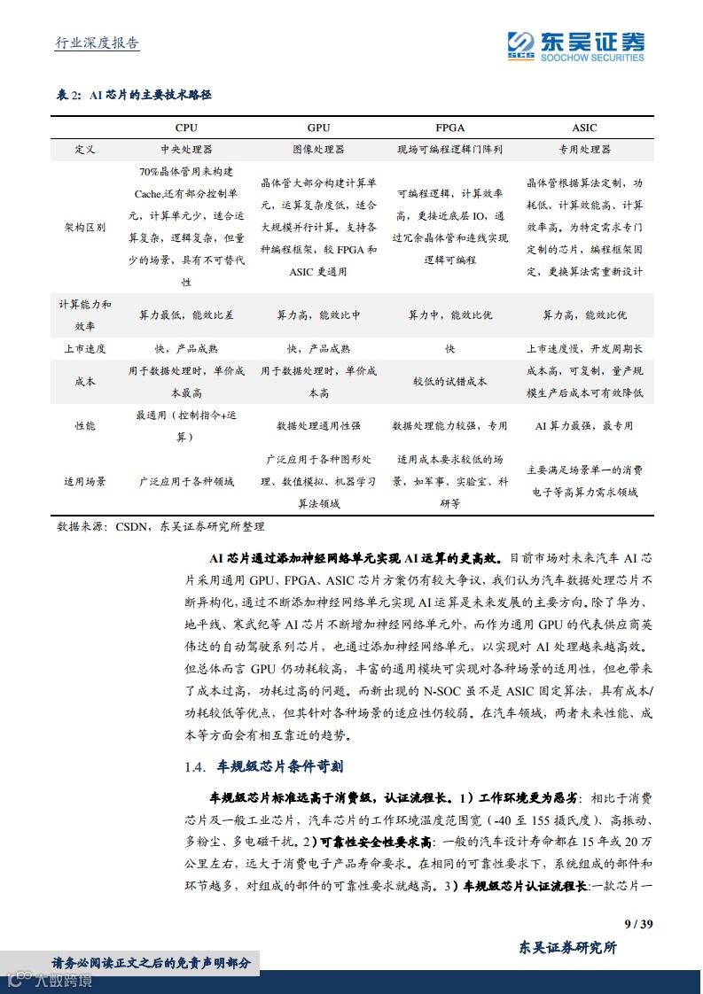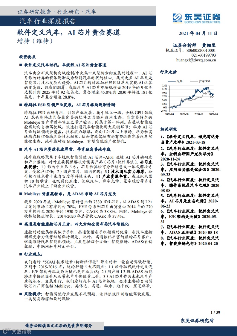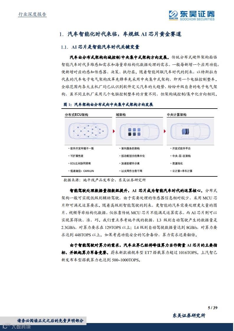 东吴证券:软件定义汽车,AI芯片黄金赛道