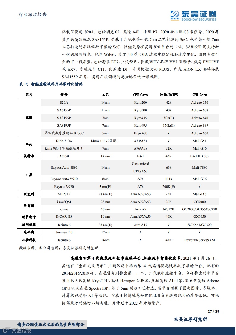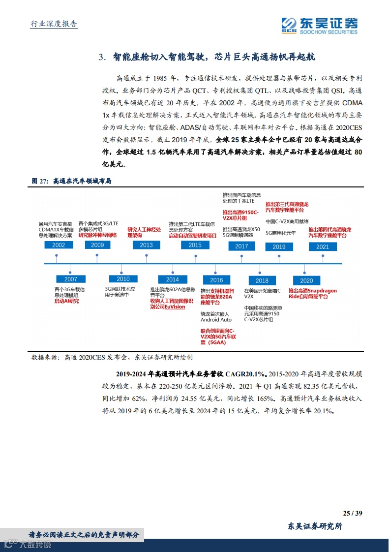 高通是智能座舱芯片王者,四大方向全面布局汽车智能化