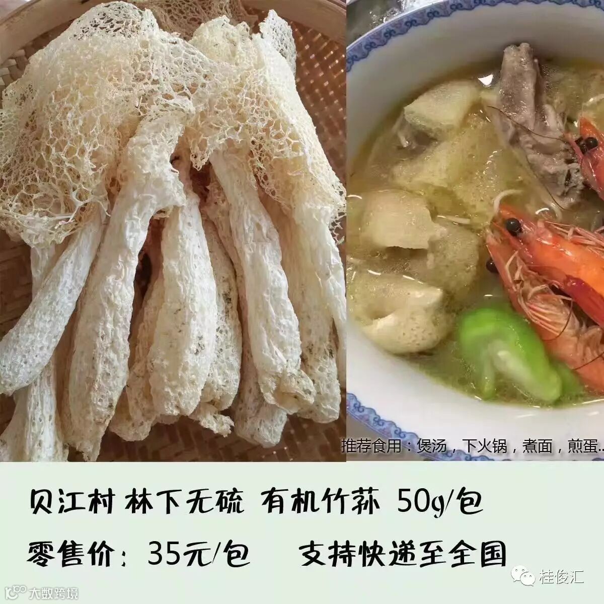 来自零污染的贝江河畔竹林地带的竹荪,而非大棚种植哟。
