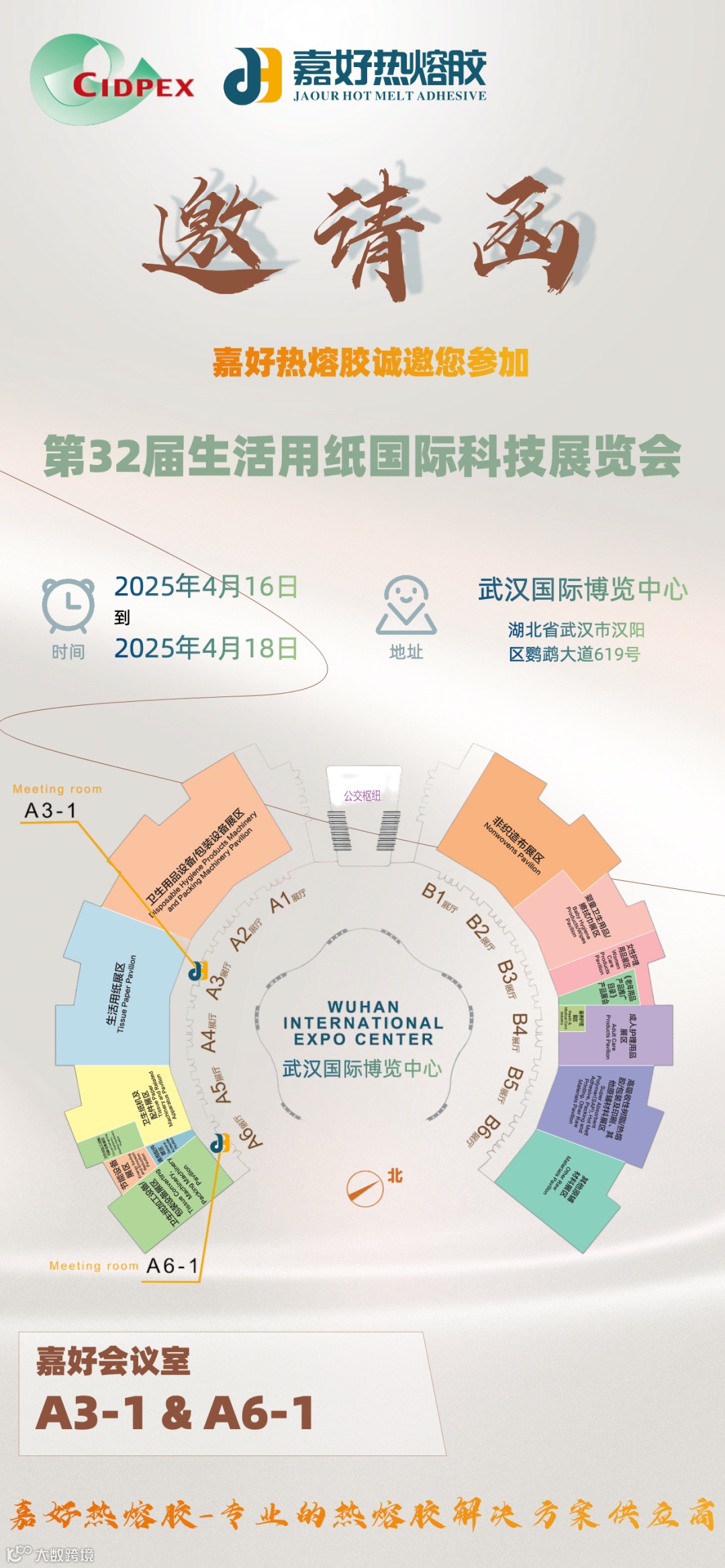 嘉好热熔胶诚邀您参加第32届生活用纸国际科技展览会
