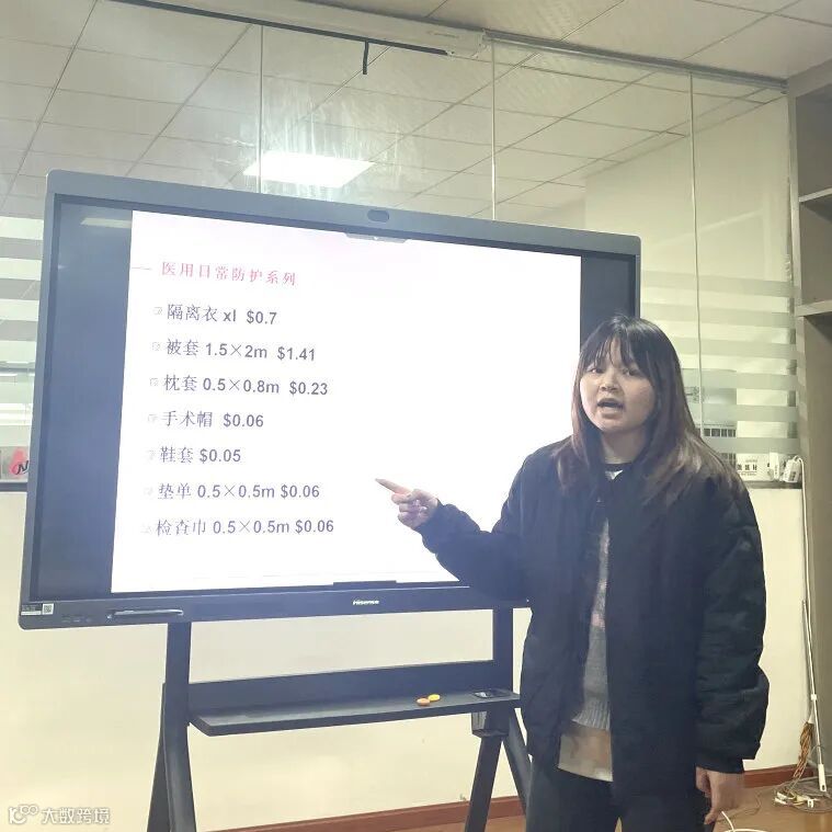 随后,按会议流程,眉山外贸团队按照新材料版块和医疗版块的顺序由各业务员向大家逐一梳理展示了其各自负责产品的基本情况,并由来自生产、技术、质量等部门的5位评委对各业务员的综合表现进行评分。业务员用生动的语言和专业的水平从产品性能、技术指标、标准、规格、包装、应用领域、价格、售后等多维度向在座人员做了深入刨析。同时,现场评委也对每一位业务员对产品的认知进行了点评与答疑。通过评分,李燕、彭金凤、王迅宁三人获得排名前三,拟获聘公司培训导师。