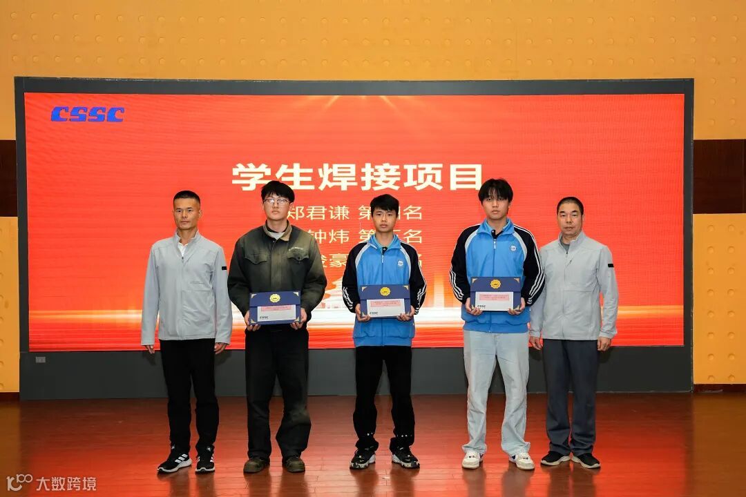 在学生焊工技能竞赛项目中,广船技校吴远豪荣获第一名,黄船技校刘规旺、广船技校陈广辉分获第二、三名。广船技校郑君谦、方钟炜与黄船技校钟俊豪分别获得第四至第六名。黄船技校刘雲、广船技校黎美焕、黄船技校朱荣亮和张晋贤荣获优胜奖。