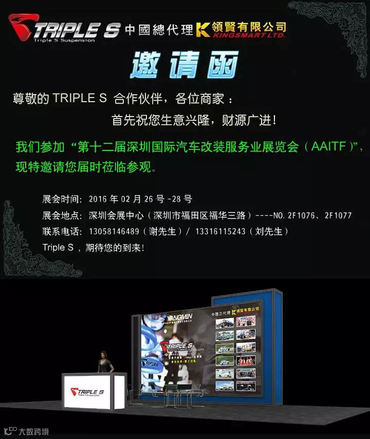 Triple S suspension 參加2016深圳國際汽車改裝展,在此敬邀您的參與!