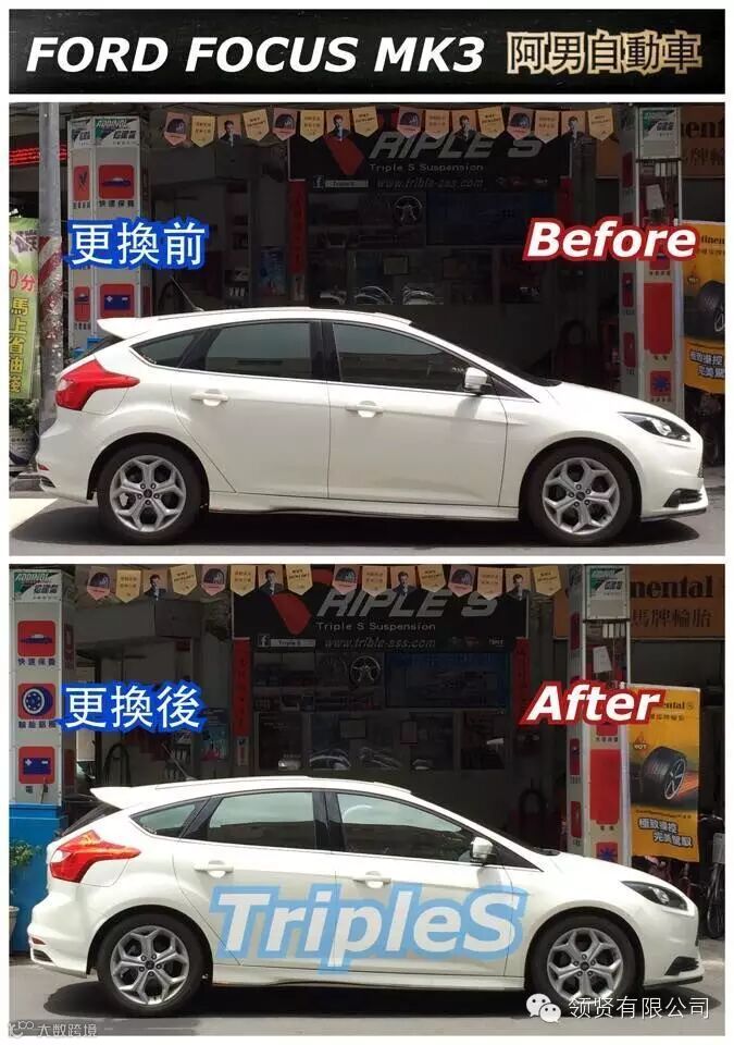 台湾での建璋汽車会社のオーナー:陳さんがFORD FOCUS MK3 2.0にTriple S ローダウンスプリングを取り付けて情報のシェアを頂き感謝しております。Triple Sを取り付けると走行中の揺れが改善され、走行安全向上、純正のように快適な乗り心地も保持します。