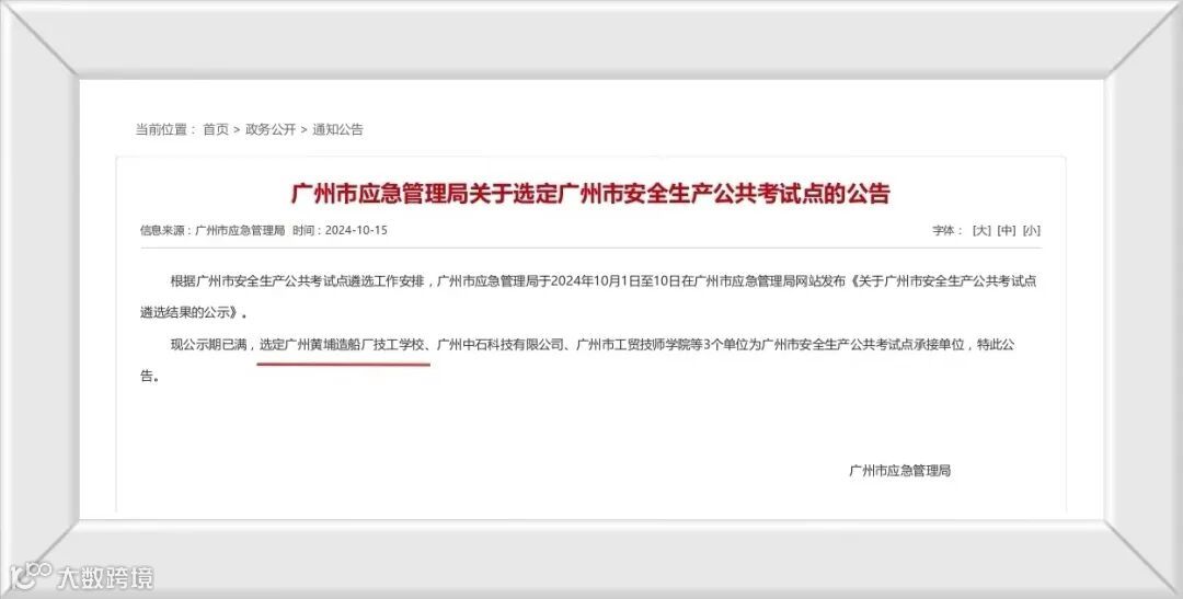 近日,广州市应急管理局发布公告选定三家单位为广州市安全生产公共考试点。中国船舶集团广州公司所属黄船技校成为广州市安全生产三大公共考试点之一。