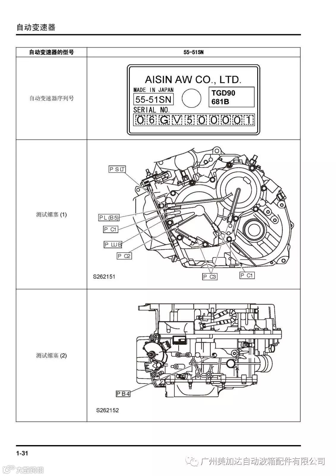 AW 55-51SN 自动变速箱型号介绍。