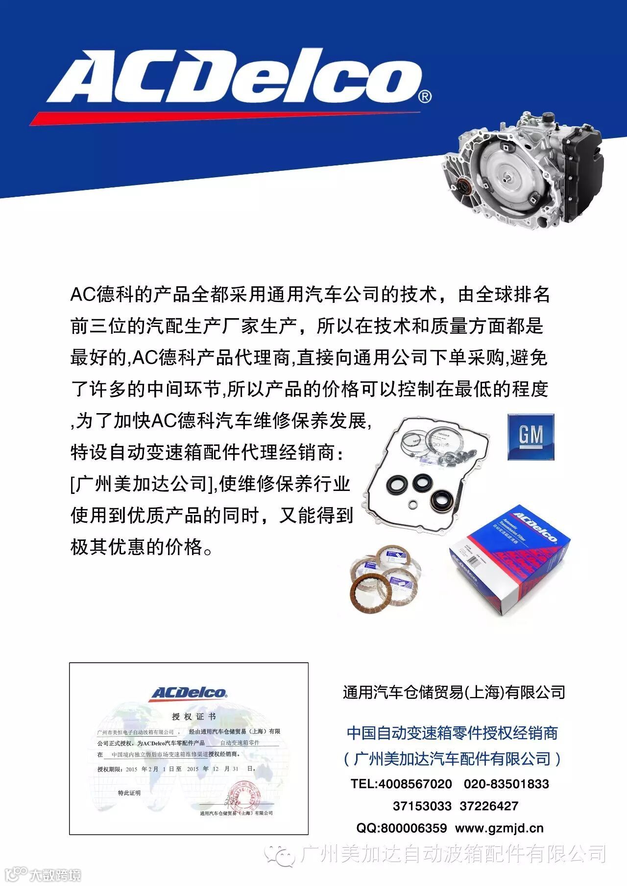 AC德科的产品全都采用通用汽车公司的技术,由全球排名前三位的汽配生产厂家生产,所以在技术和质量方面都是最好的,AC德科产品代理商,直接向通用公司下单采购,避免了许多的中间环节,所以产品的价格可以控制在最低的程度。为了加快AC德科汽车维修保养发展,特设自动变速箱配件代理经销商:广州美恒电子自动波箱有限公司[美加达企业],使维修保养行业使用到优质产品的同时,又能得到极其优惠的价格。