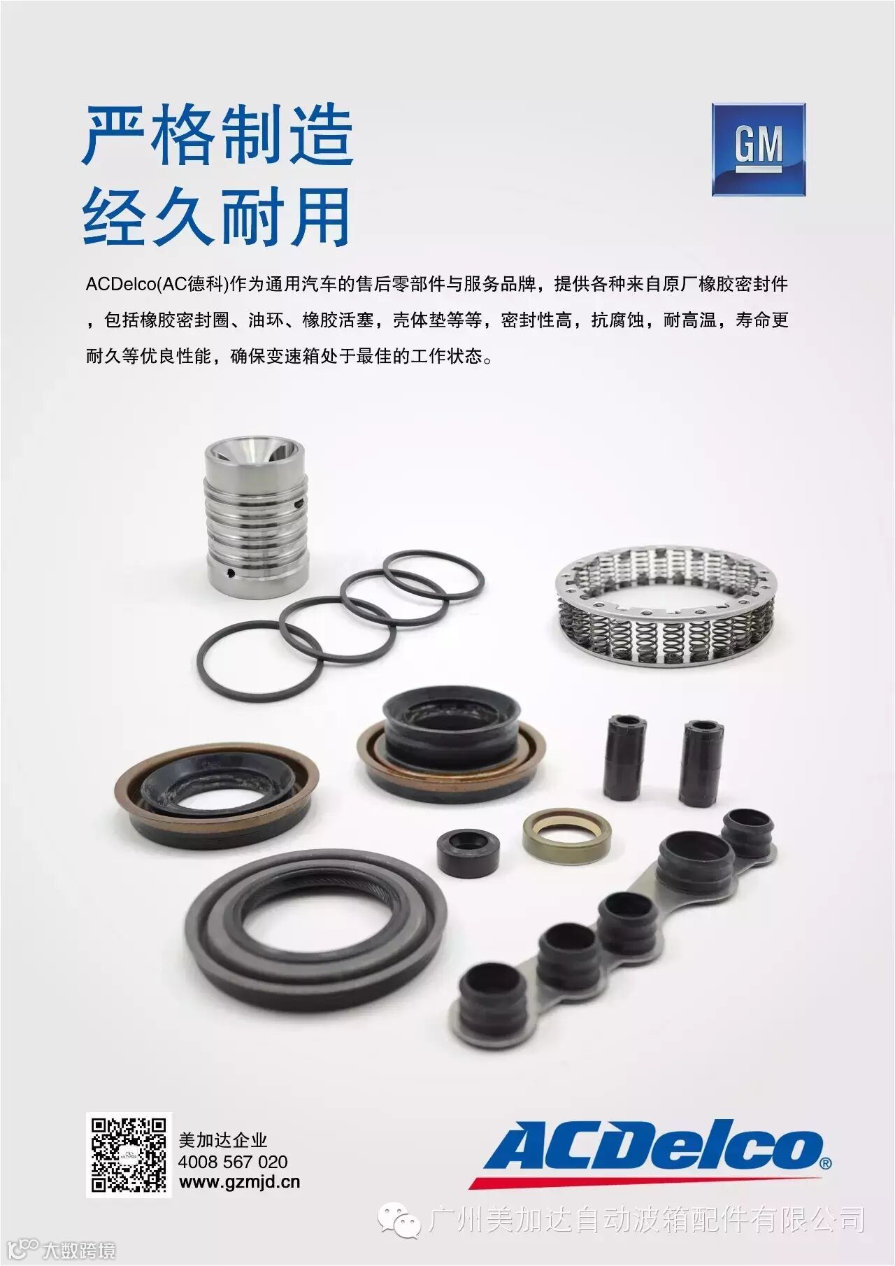 ACDelco(AC德科)作为通用汽车的售后零部件与服务品牌,提供各种来自原厂橡胶密封件,包括橡胶密封圈、油环、橡胶活塞,壳体垫等等,密封性高,抗腐蚀,耐高温,寿命更耐久等优良性能,确保变速箱处于最佳的工作状态。