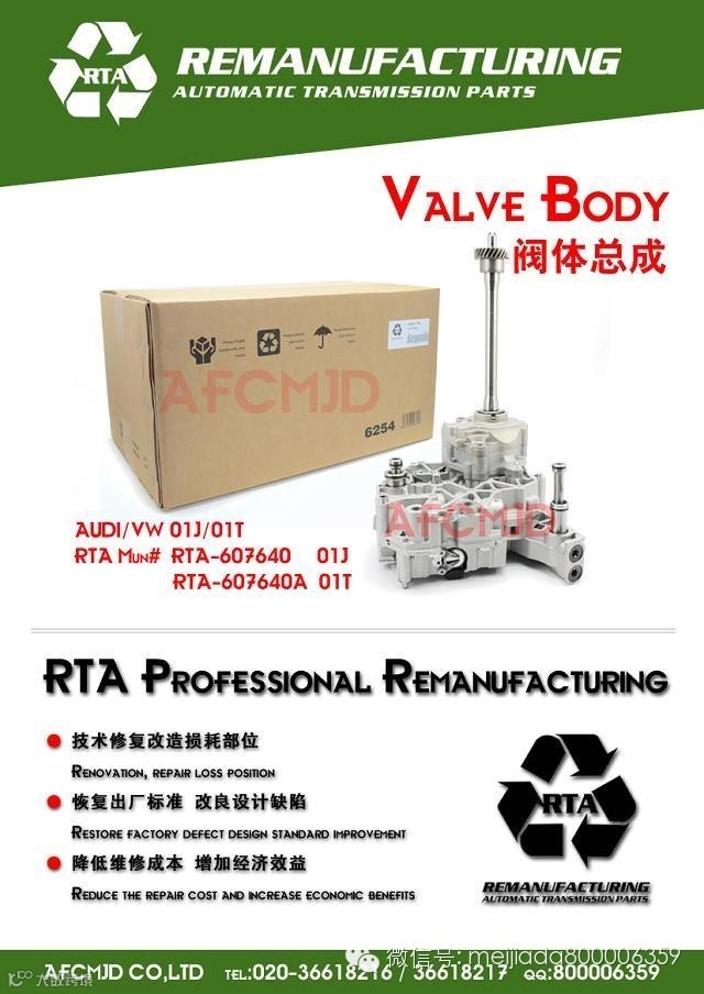 广州美加达企业,国内最早从事自动变速箱售后维修零配件销售的企业,为降低维修厂商和车主的维修成本,新推出再制造阀体(0B5、09G、01T、01J、5HP19、4T65E、09D、6HP19、6HP26 、AW55-51、TF81SC、RE0F10A /轩逸),各种车型再制造变扭器。