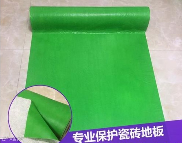 地砖铺贴完成清洁干净后,表面铺设保护垫,保护垫之间的接缝以及保护垫与墙面之间的接缝用透明胶带粘贴牢固,防止由于后续施工将地砖划伤、撞伤。