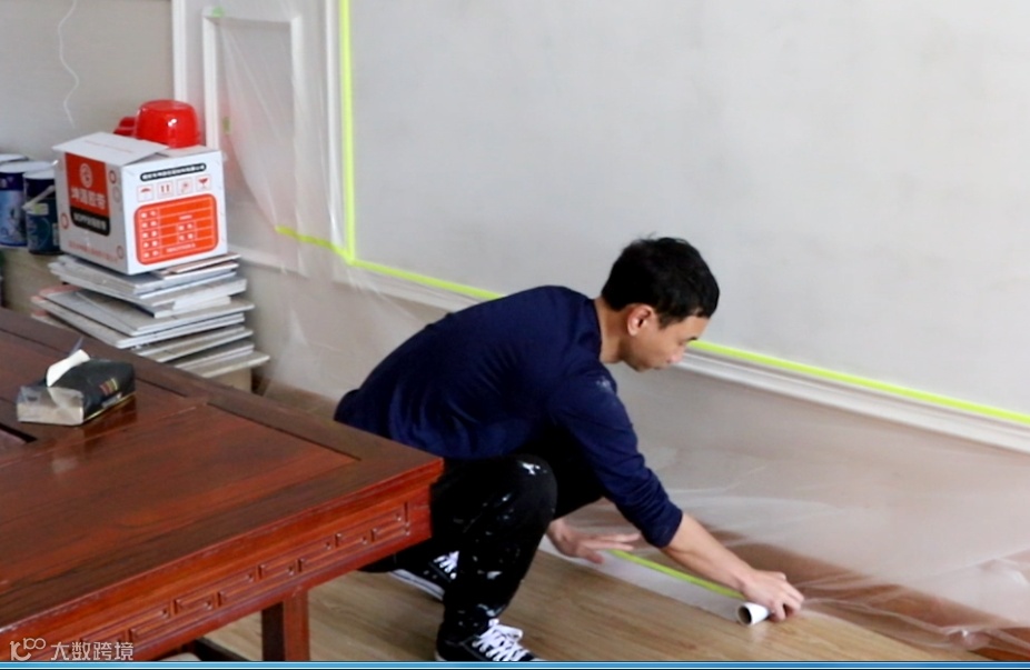 定制柜体完工后,用塑料膜整体包裹柜体,与地面、墙体连接处,用胶带粘贴牢固,可以避免灰尘并防止后期施工对柜体造成损坏。