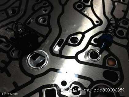 因为反复试车都不见好转因此大家怀疑是不是液压控制阀体出现了问题(根据使用时间和车辆使用里程来判断该元件不能过早的出现问题,但对于一个新产品来讲也不排除存在一些小问题。),于是死马当活马医决定把阀体解体检查。当分解阀体时大家才发现跟原来的6HP系列一样阀体中间隔板垫是带密封胶的那种(一次性的),但不过也确确实实看到点问题那就是在阀体中间隔板上有被单向阀冲击出很严重的痕迹(见图2),这充分说明因该是系统压力不稳定而导致阀孔冲出严重痕迹(在过去只有行驶具有相当一定里程后的车辆才可能出现这种现象)。