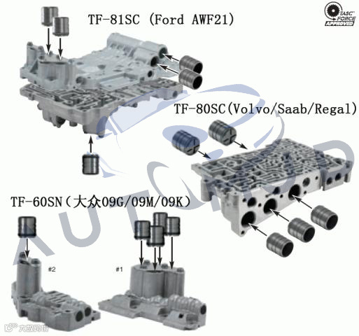 在当今的6速自动变速箱市场上,爱信公司产品占有很大的市场份额,其中国内最常见的就是爱信的TF-60SN,大众将它安装于多种车型中,将它称为09G,09M以及09K。而用于奥迪、途锐及保时捷卡宴的09D也是爱信的6速后驱变速箱,爱信的名称为TR-6SN。此外,还有爱信的TF-80SC,整车厂叫它AF40,欧系车比如VOLVO,SAAB,OPEL,路虎,标致等车型中使用广泛,而国内上海通用公司新近生产的新款君威2.0T用的也是这款AF40爱信6速变速箱。而爱信的TF-81SC变速箱被福特称为AWF21,被用于新款福特蒙迪欧等车型上,这些爱信6速的自动变速箱在今后几年中将在维修市场越来越常见,尤其是大众09G,此变速箱已被用来完全取代早先的大众01M和01N的4速变速箱而使用于各种国产的大众车型中,比如大众途安,POLO,新宝莱,朗逸,速腾,迈腾,斯柯达等,其今后的维修保养量可见一斑。然而爱信公司对于维修市场采取了一贯的技术资料和零配件的封锁,维修人员除了一些基础的整车厂培训资料外,缺乏深入的技术资料以及需要更换的零配件,维修市场除了能出高价更换变速箱总成或者小总成外,要想以低成本来维修这些爱信6速变速箱似乎困难重重。本文将介绍一些这类爱信6速变速箱与以往4速变速箱不同的故障特点,以及国外维修市场中一些最新的维修方案,以供国内行业参考。