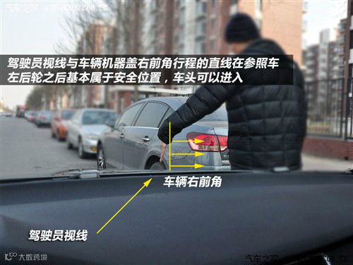 对于判断车位大小,这主要是凭感觉,我们也很难给出严谨的方法,不过这也并非完全没有技巧可循,当驾驶员的视线与机器盖右前角所形成的直线在右前车辆的左后轮之后,相对来说就是比较保险的。