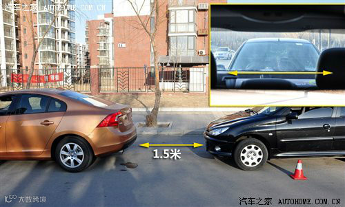 按照网络中的建议,此时与旁车相隔1.5米左右开始倒车最为保险,经过测试,这个距离操作起来的确很舒服,但是在现实生活中往往不具备这样的停车条件,那么缩短距离是否可行呢,通过多次实验我们可以负责任的说,完全没有问题。