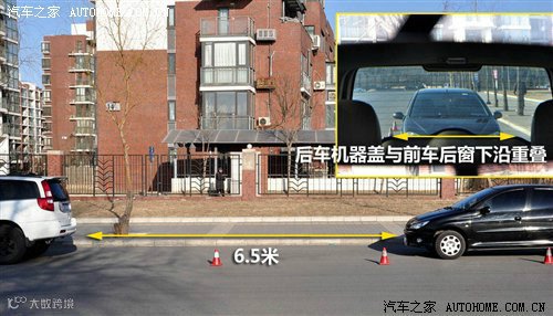 SUV在前:与之前提到的原理一样,由于车型类型和视线角度的原因,虽然从后视镜观察,后车格栅已经被挡住,但此时两车仍有6.5米的车距。
