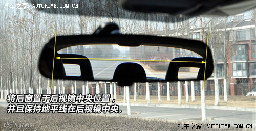 相对来说车内后视镜的调节比较容易,首先保持合适的坐姿,然后将后窗映射在后视镜的中央,并且保持后视镜内的地平线维持在镜面中央即可。