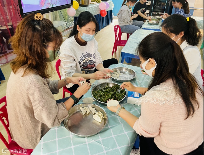 幼教事业部开展美妆展示、游戏互动、包饺子、献歌送祝福等活动。