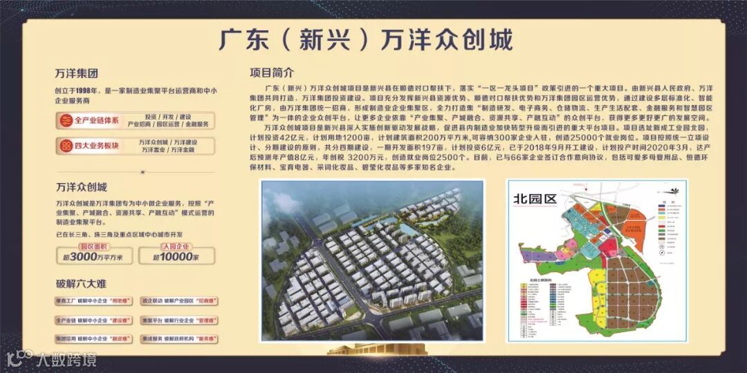 在招商方面,新兴万洋众创城已与66家企业签订合作意向协议,以化妆品、母婴制造业为主;万洋众创城园区利用“产城融合”的运营模式,在园区内建有员工宿舍、中央食堂、生活超市等配套设施,满足入园企业员工的生活配套需求;同时,在园区内还建设了环保共性处理工厂,将园区内企业在生产中产生的废水进行集中处理,有效解决“排污难、排污贵”的环保难题,使得入园企业日后生产无忧、生存无忧。