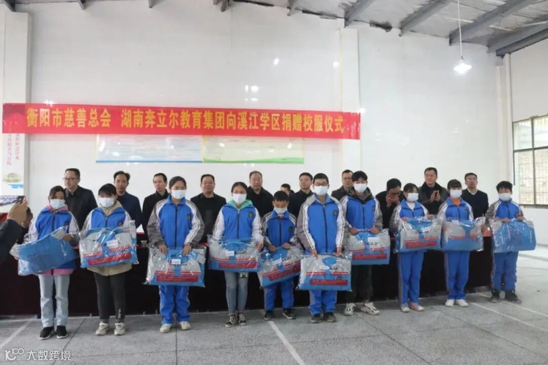 12月4日,寒风袭人,阻挡不住暖意融融。奔立尔集团董事长林强携企业员工冒着严寒来到衡阳县溪江乡溪江中学,为学校和学区的孩子们捐赠近700套校服,价值83640元。衡阳市慈善工作协调小组副组长、市慈善总会会长蒋勋功,衡阳市民政局党委委员、副局长、市慈善总会副会长兼秘书长邹永焱出席捐赠活动。