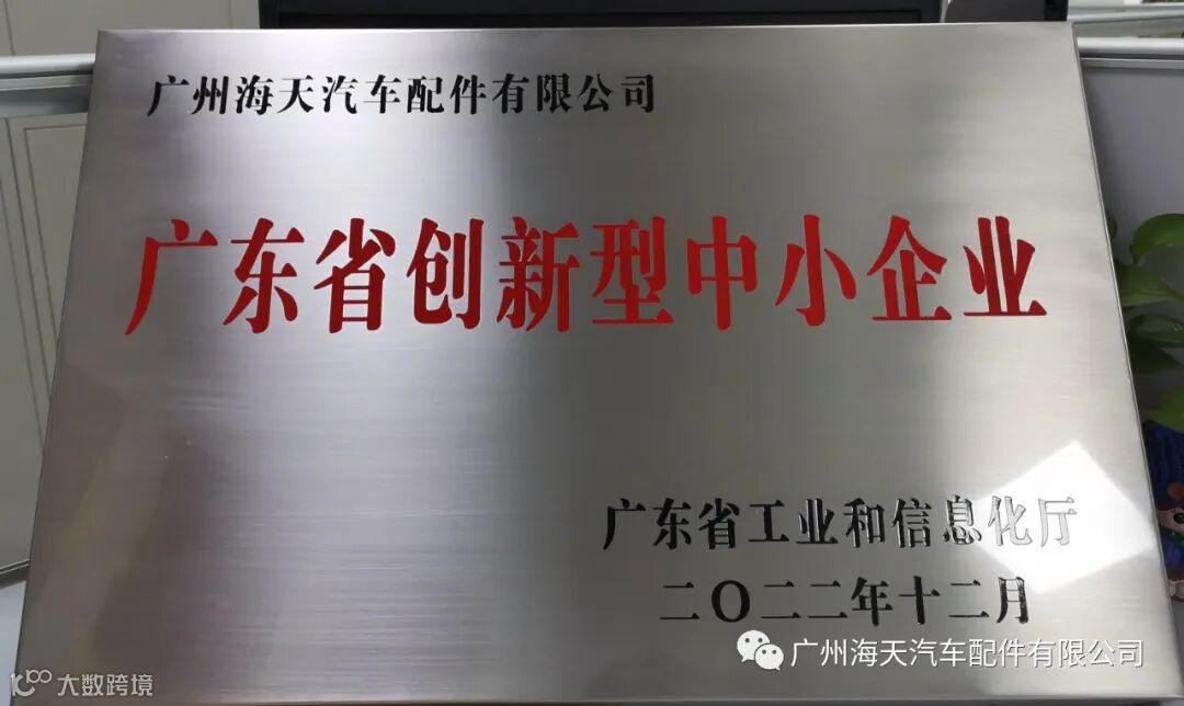 广州海天汽车配件有限公司荣获“广东省创新型中小企业”
