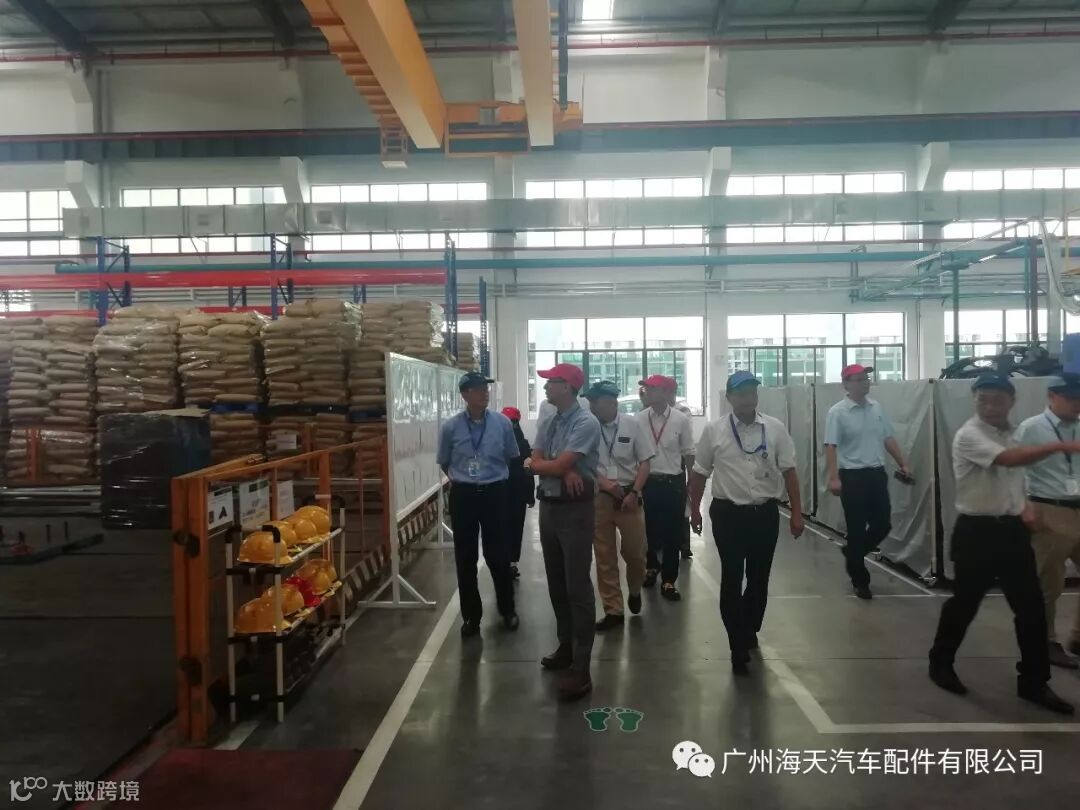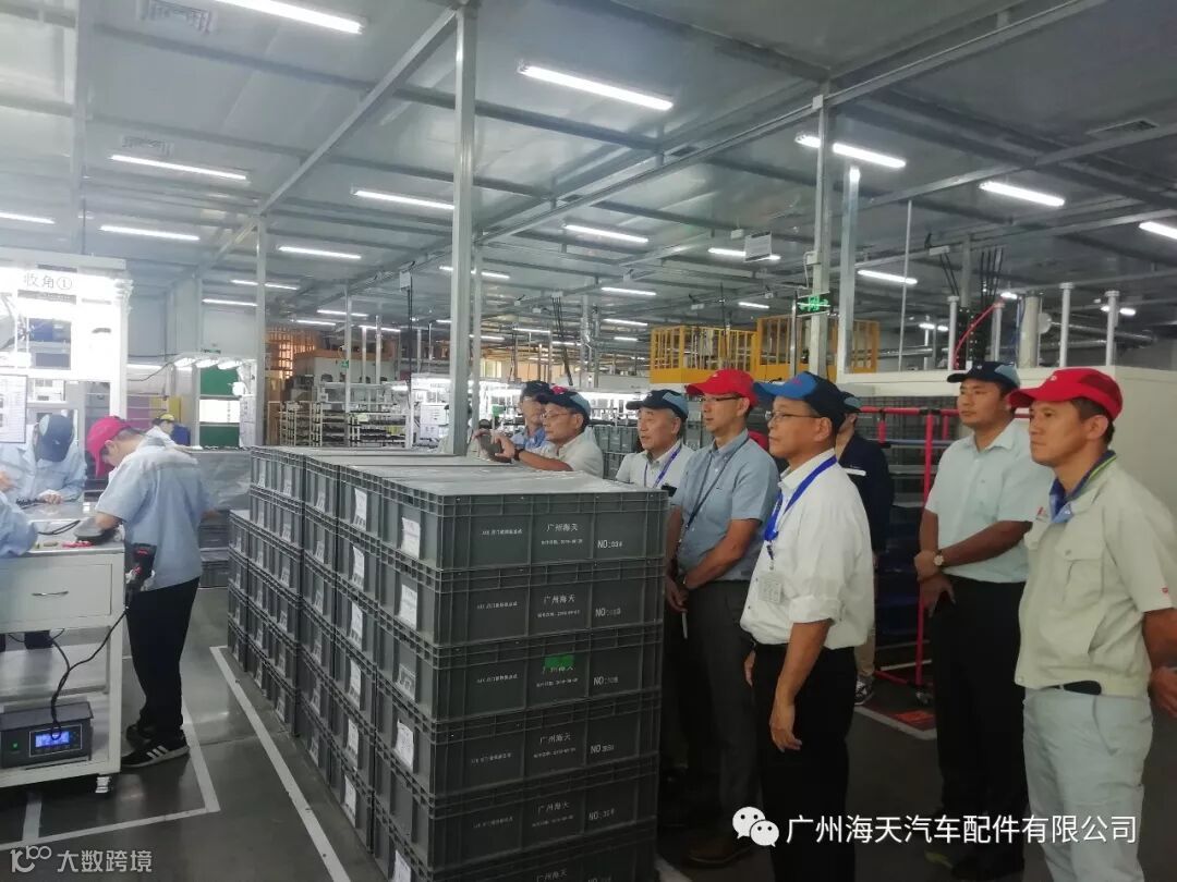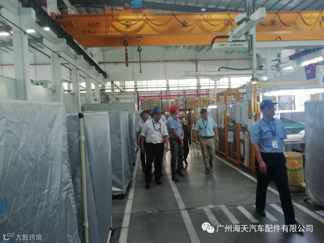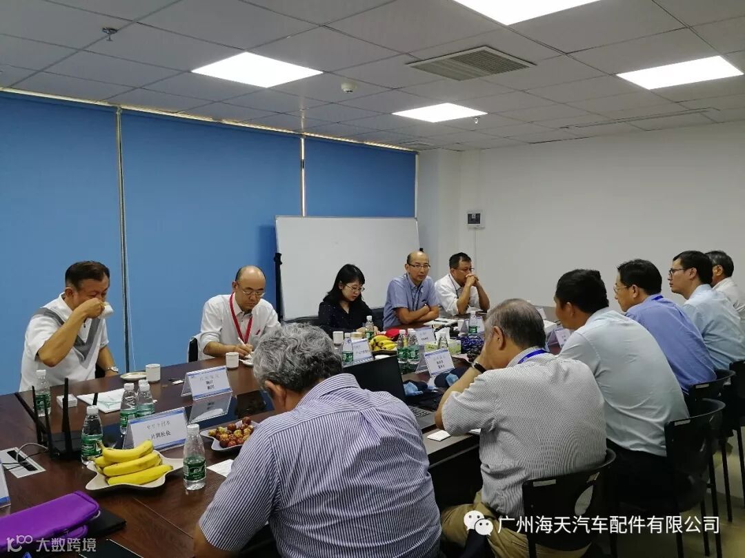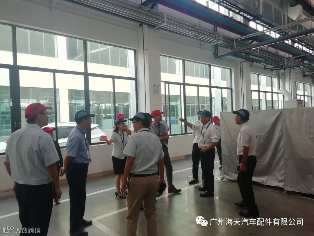 2019年10月25日下午15:00时,广汽丰田汽车有限公司设计院副总经理江口 浩二先生 、 产品开发部CO牛田 健二先生、副总秘书何纯女士 ;丰田合成(佛山)汽车部品有限公司董事.总经理向井先生;MORITO日本株式会社社长片冈总先生;MORITO国际贸易(上海)有限公司营业部长 田浩先生等一行莅临海天赤坭工厂(简称海天汽配)。海天董事长刘水彦先生率领总经理张平先生、石川副总、丸山副总、驹田顾问、工厂长范坤先生等一行高管亲临现场接待。
