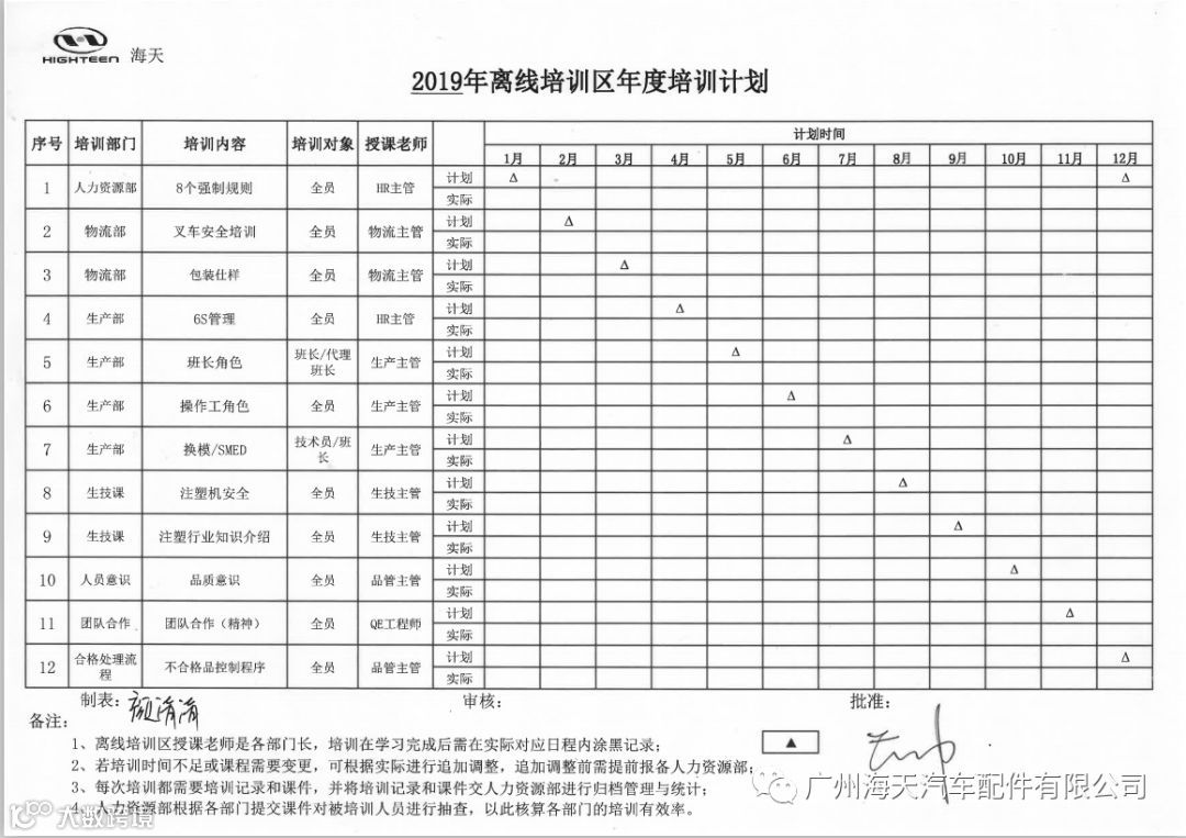 由生产部、生技部、物流部、品管部和人力资源部共同组织的离线培训区在2018年9月份开始试行。