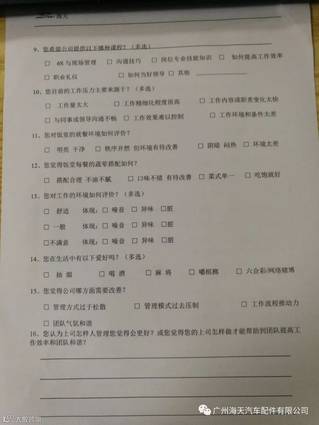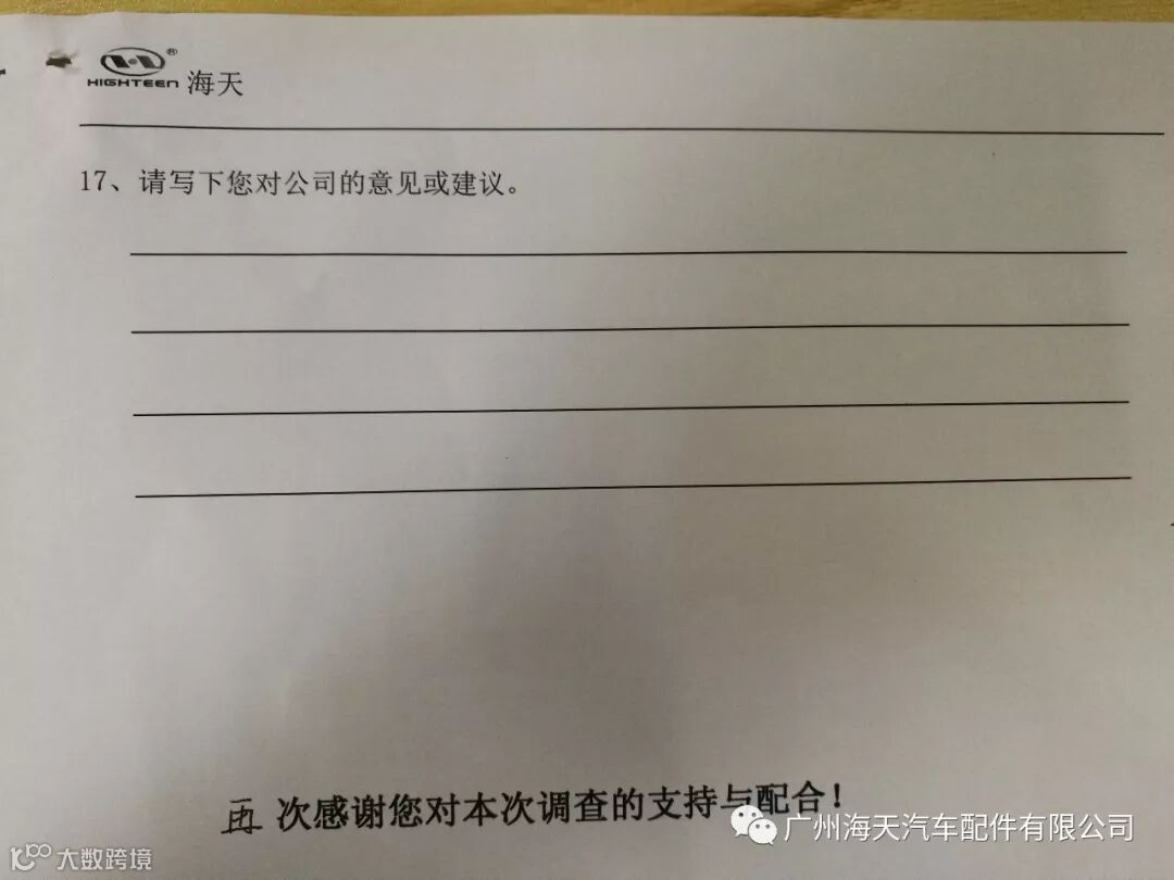 提示:您对公司的意见和建议,或是问卷中的问题您有其他的答案的,欢迎您在公众号中留言。