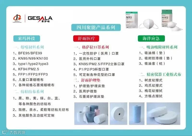 四川聚能滤材有限公司前身【叶鹰纺化】成立于2007年7月,现有两家全资子公司和一家独立车间,分别是四川索玛新材料科技有限公司、四川舒而医疗器械有限公司和海洋应急独立车间,是当地政府为了承接国家级应急产业基地的背景下运营而生, 四川索玛科技承担国家防疫物资应急防护保供重点单位,于2017年4月年正式落户于成都-阿坝工业集中发展区,拥有4个博士两个硕士,专业从事医用敷料材料和海洋油污处理的产品研发、设计、生产及销售工贸一体化的二类医疗器械高新技术企业。