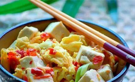 豆腐和鸡蛋搭配在一起食用,能够提高豆腐中钙的吸收率,起到强壮骨骼的作用。