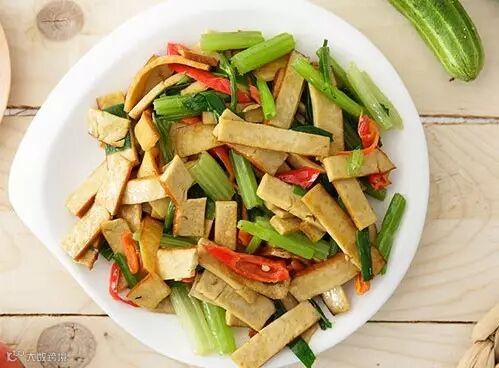 豆腐加芹菜有辅助降低血压的作用。