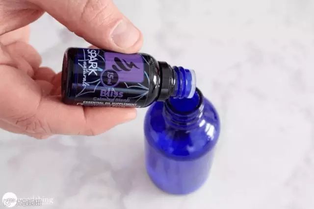 步骤三:将精油滴几滴到喷雾瓶中,加入蒸馏水摇匀。