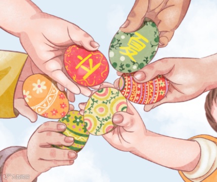 立夏蛋,满街甩”,斗蛋通常是小孩子们的游戏。一般是用白水带壳煮的囫囵蛋,经冷水浸过,然后装在用彩色丝线或绒线编成的网兜里,让孩子挂在脖子上。