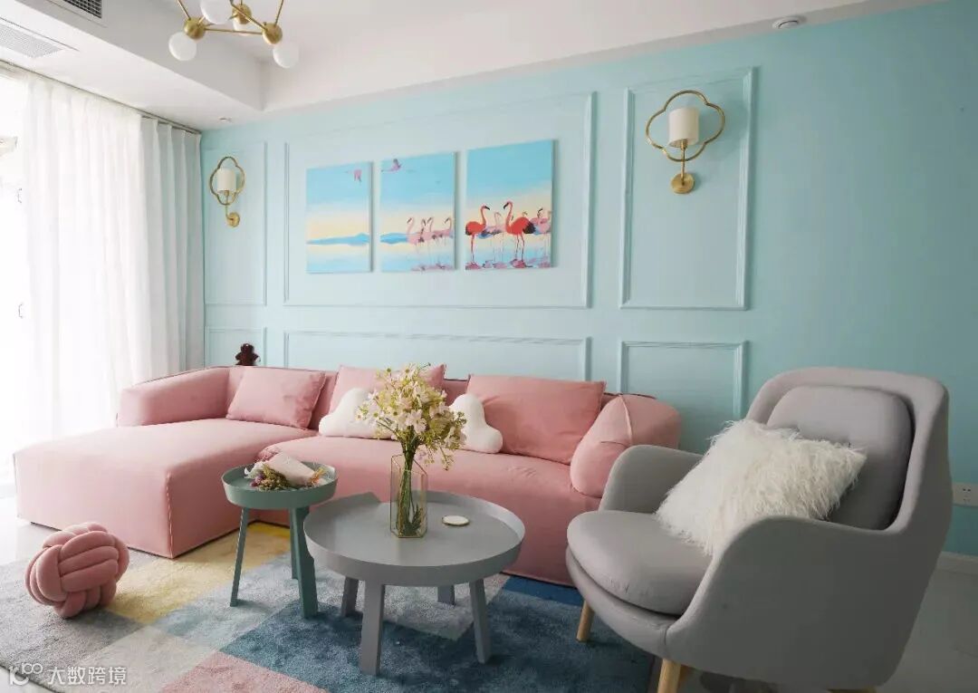 所以在增添家居摆设的时候,可以多考虑一些能让自己开心舒服的颜色款式,比如说自带治愈能力的马卡龙色系客厅组合或者是温馨色的窗帘等等。