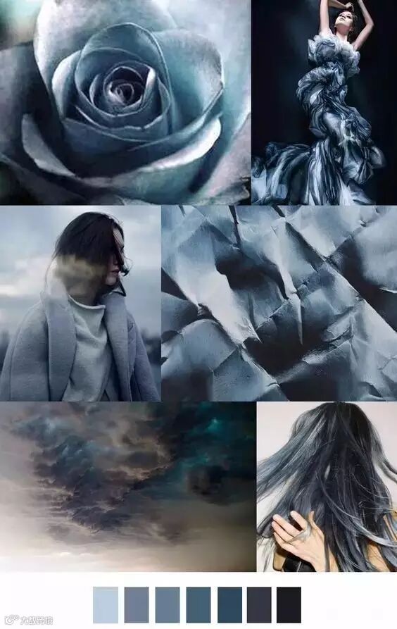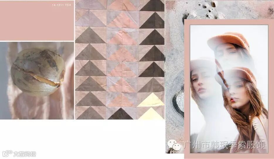 本季“元素”主题调色盘涵盖了从轻快的浅淡中性色到偏暗沉的灰色,在硬朗与柔美之间、浅色与暗色之间形成了张力,冷色调蜡笔粉彩色和珠光金属色进一步强化了这种张力效果。