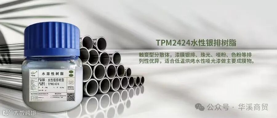 [特点和用途]为了解决水性树脂在银粉排列效果不稳定,金属感差,动态稳定性等方面问题,本公司经技术攻关,采用连锁聚合,不同特性单体混合反应及复合交联技术,合成了作为水性银排低温烘烤涂料为主要成膜物的TPM2424水性银排树脂。采用该树脂作为水性银排烘烤涂料主要成膜物,其涂料配方设计简单,满足涂装过程安全、环保要求。且涂膜具有银粉排列效果好、耐冲击性能好、耐溶剂擦拭性能优异、耐水性能强等特点。