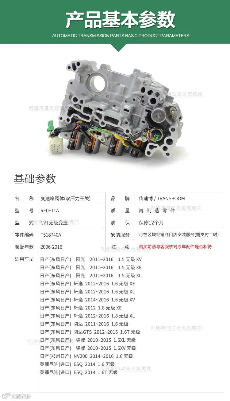 【传速博】日产RE0F11A变速箱双压力开关阀体