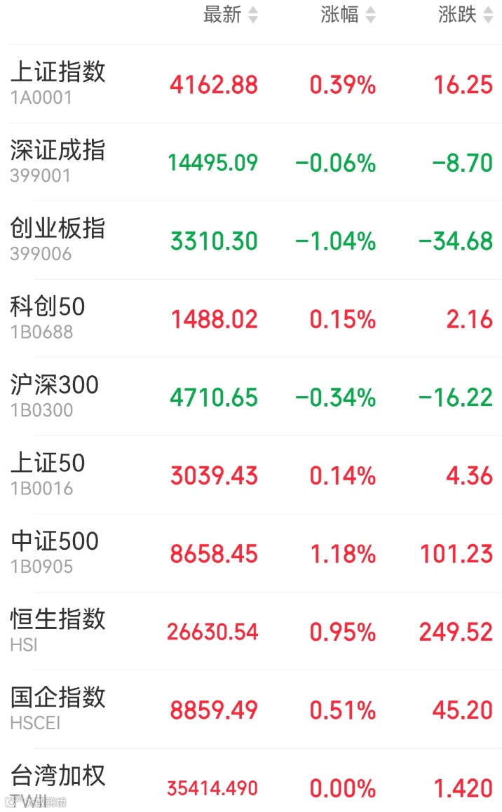 1、A股:上周五上证指数收涨0.39%报4162.88点,深证成指跌0.06%,创业板指跌1.04%,万得全A涨0.41%。电力、有色金属、钢铁、煤炭等周期资源股走强;AI应用板块反弹,算力硬件调整。市场全天成交2.51万亿元,上日成交2.56万亿元。2月,上证指数累计上涨1.09%,深证成指涨2.04%,月线均斩获3连阳;创业板指累计下跌1.08%。