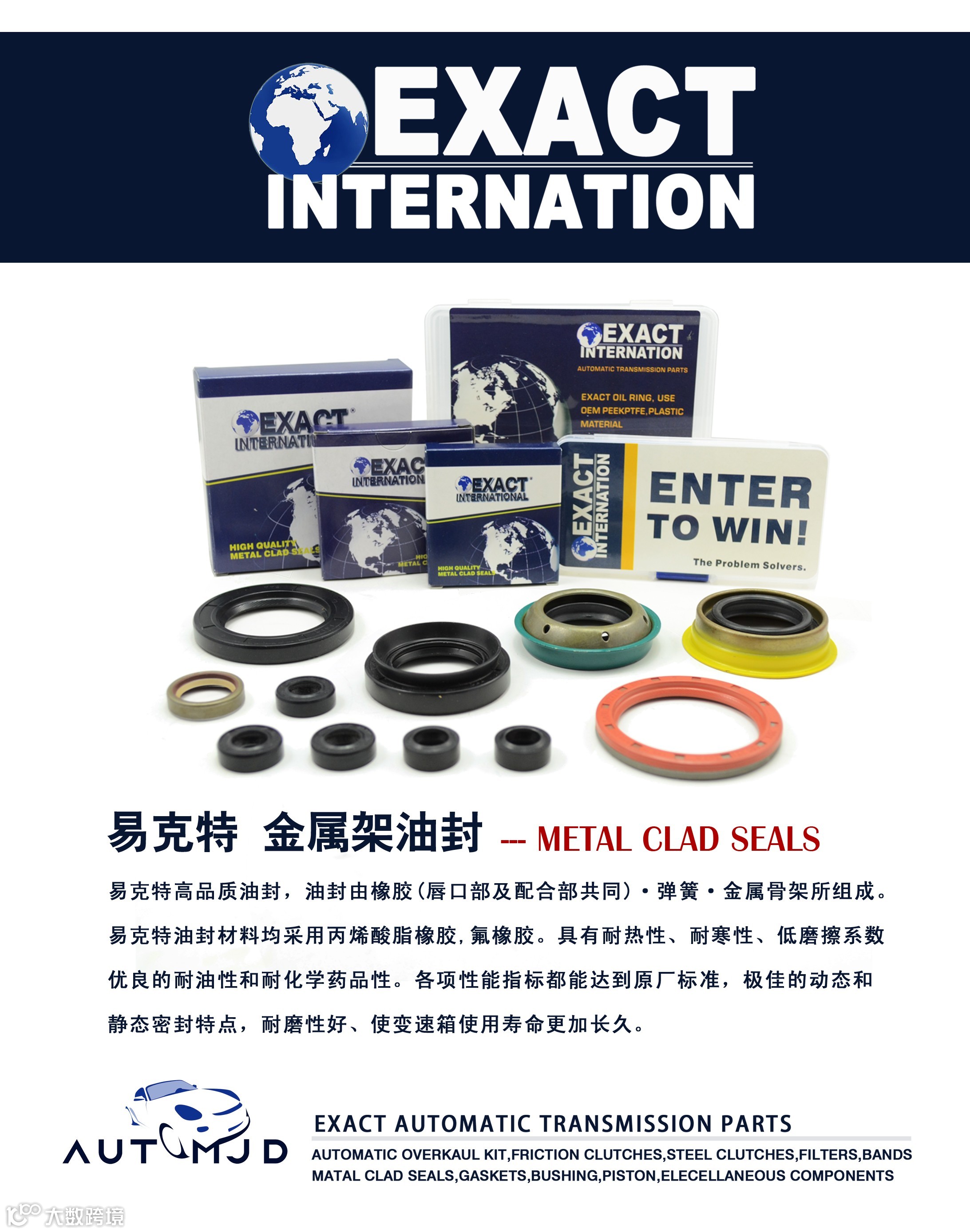 易克特高品质油封 油封由橡胶(唇口部配合部共同)·弹簧·金属骨架所组成。易克特油封材料均采用丙烯酸脂橡胶,氟橡胶。具有耐热性、耐寒性、低摩擦系数优良的耐油性和耐化学药品性。各项性能指标都能达到原厂标准,极佳的动态和静态密封特点,耐磨性好、使变速箱使用寿命更加长久。