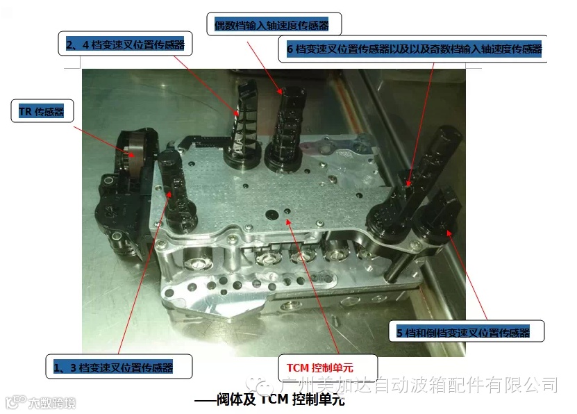 CSMS1、CSMS2:多路电磁阀CSMS1引导奇数离合器和换挡之间的压力,启动奇数齿轮以及控制离合器的冷却流量;多路电磁阀CSMS2引导偶数离合器和换挡之间的压力,控制离合器的冷却流量,并可以关闭离合器压力的阀,保持住离合器压力。