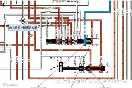 故障诊断首先确认故障现象,确如客户所述,踩制动踏板挂倒挡, 冲击猛烈。挂前进挡无异常。挂前进挡试车,无论是手动模式还是自动模式升降挡都未见异常。在着车的状态下断开变速器控制模块连接器再挂倒挡,冲击方式的力度均和未断变速器控制模块连接器前一样。这给人的感觉是无论断开和未断开变速器控制模块连接器挂倒挡都是以纯液压的方式工作,并没有电控的介入。