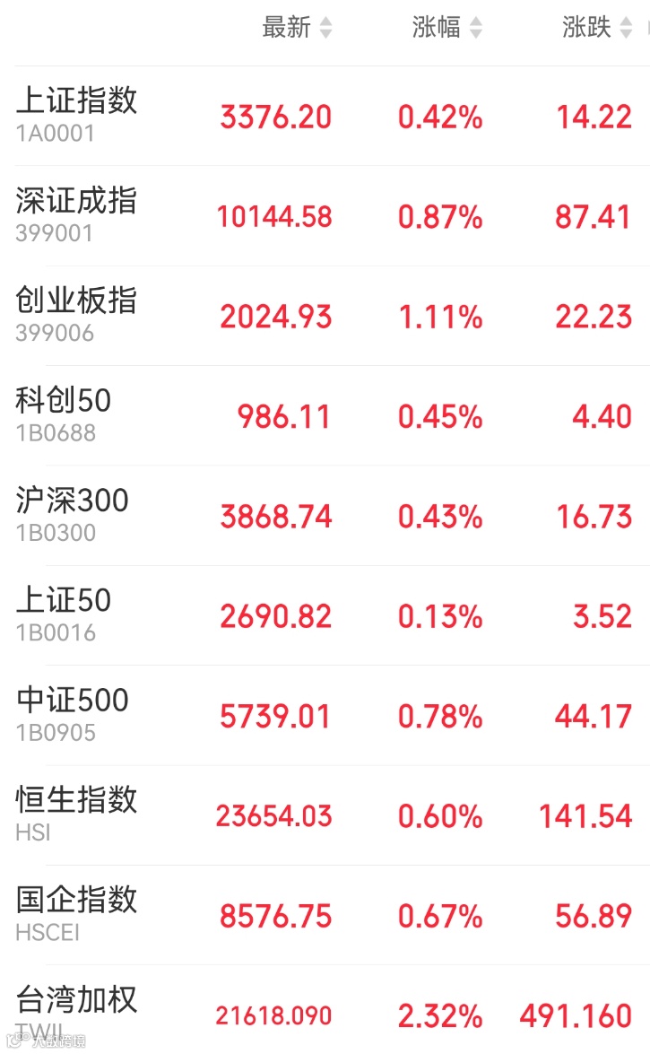 5、欧股:欧洲股市连续第二天上涨,德国DAX指数创下历史新高,此前德国政府宣布了大规模的企业减税计划。德国DAX指数涨0.77%报24276.48点,法国CAC40指数涨0.53%报7804.67点,英国富时100指数涨0.16%报8801.29点。