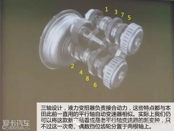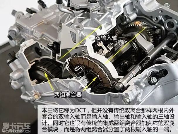 此次本田推出的8前速DCT保留了液力变速器作为动力结合元件,同时离合器鼓的结构也得以保留,但其没以行星齿轮组做为划分挡位的机构,这让它并不能归类于液力自动变速器。