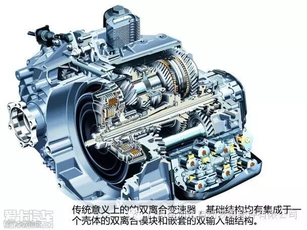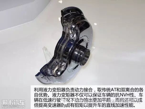 平行轴变速器内部也有类似AT变速器的离合器鼓,其中安装的多片离合器和AT变速器中的一样担负着换挡的任务,但仍然依靠液力变扭器将动力传递至输出轴。