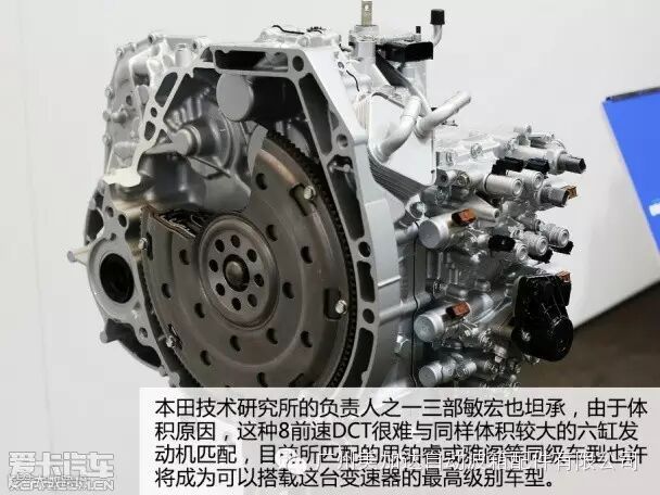 自此款8前速多轴变速器亮相以来,我们已经通过发布会或是试车体验到多轴常啮合齿轮所带来换挡迅速的感觉,也体会到了液力变扭器接合动力的线性平顺。但目前仍没有资料显示此款变速器的体积与重量,而与同级的传统8AT或是7速双离合变速器在体积与重量上有多大差异也不明确。但在2013年的Honda Meeting上,本田技术研究所的负责人之一三部敏宏也坦承,由于体积原因,这种8前速DCT很难与同样体积较大的六缸发动机匹配,目前所匹配的思铂睿或雅阁等同级车型也许将成为可以搭载这台变速器的最高级别车型。